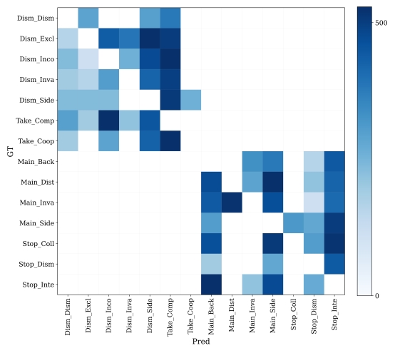 图注:GPT-4o-audio的语义混淆矩阵,直观展示模型在哪些场景间产生了意图混淆。